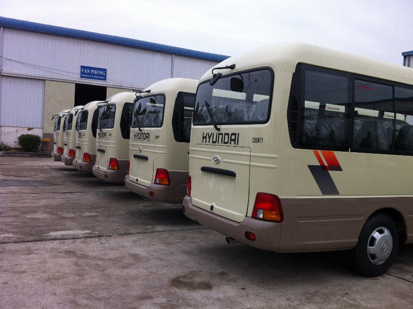 Xe khách Hyundai County đồng vàng 29 chỗ với kiểu dáng xe buýt có nội thất rộng rãi, tiện nghi cao cấp, hệ thống điều hoà không khí công suất cao, hệ thống radio-casset, hệ thống đồng hồ tiện nghi đa chức năng, ghế ngồi với đai an toàn, trang nhã, tiện dụng.